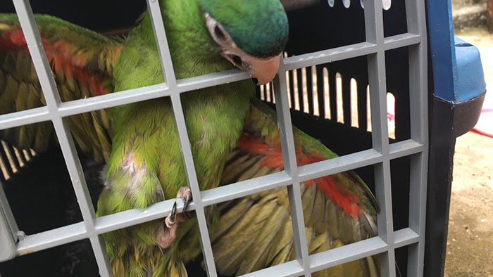 com as linhas de pipa com cerol, a quantidade de araras-canindé