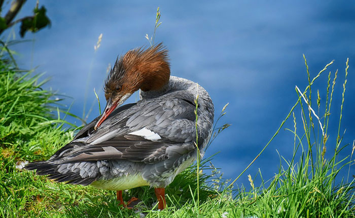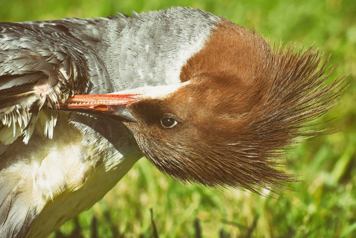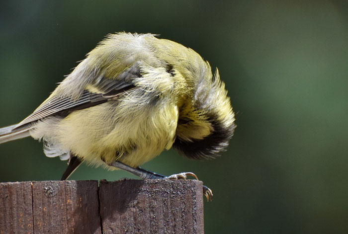alisando as penas, se contorcendo para arrumar a plumagem e fornecendo