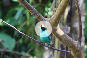 em azul-violeta e bico negro. Habita florestas altas, capoeiras