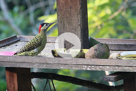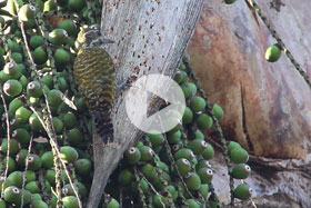 (Veniliornis spilogaster) visitando uma das palmeiras-jerivá