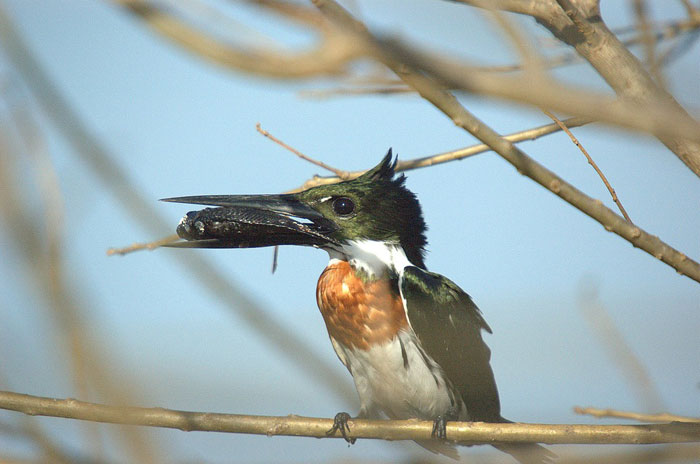 e Chloroceryle inda (martim-pescador-da-mata), com duas