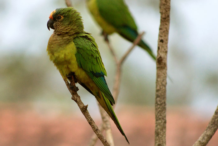 azul e a fronte amarelo-alaranjada; coberteiras das primárias