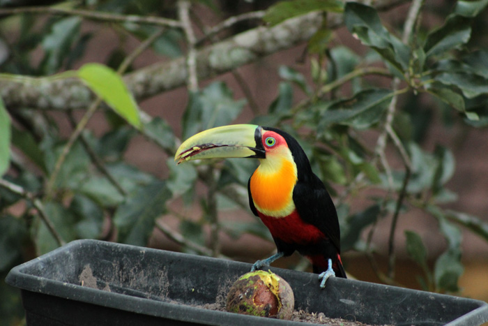 às vezes bandos de tucano-de-bico-preto (Ramphastos