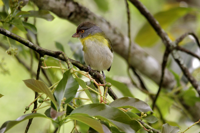 mento esbranquiçado; garganta e alto peito amarelo-esverdeados;