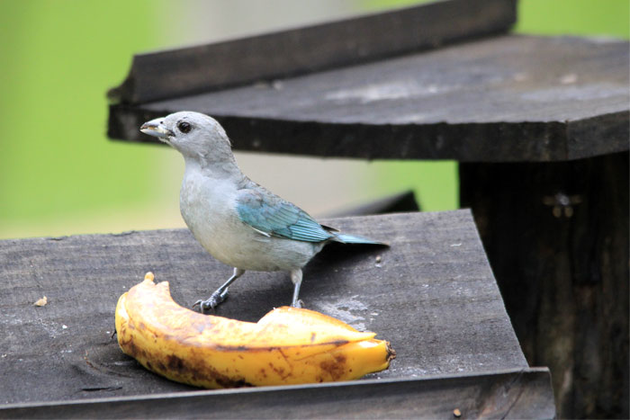 espécies frutíferas e frequenta comedouro com frutas.