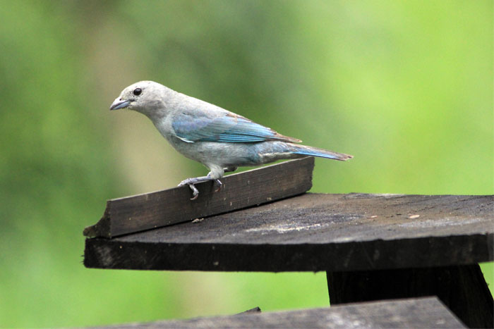 Tangara s. sayaca é cinza-esverdeado com asas