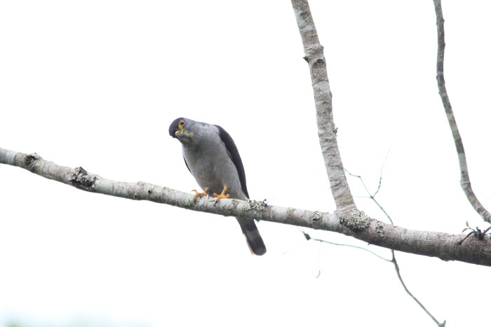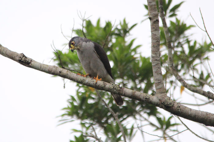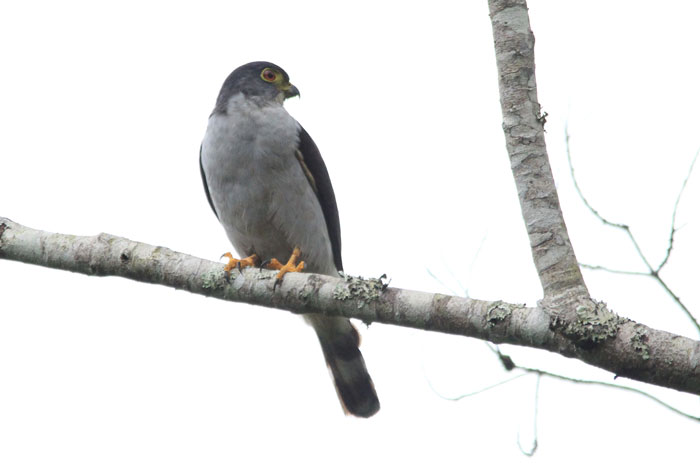 cera e anel ocular amarelos; pernas amarelas. Adulto cinza-ardósia