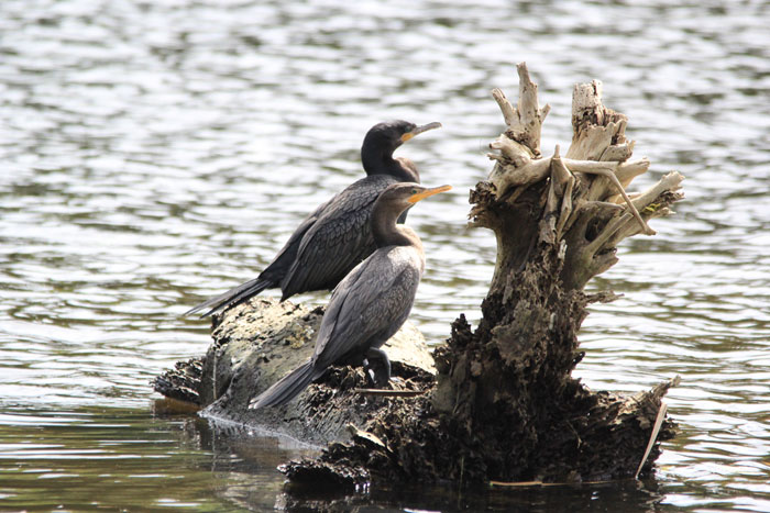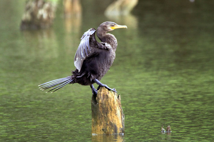 pousados sobre pedras, árvores e estacas. Esticam as asas