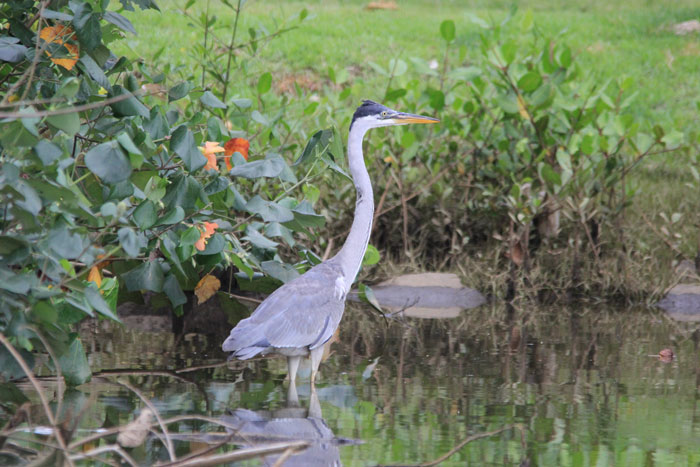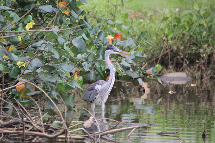 de galhos em ninhais, ao lado de outras aves aquáticas.