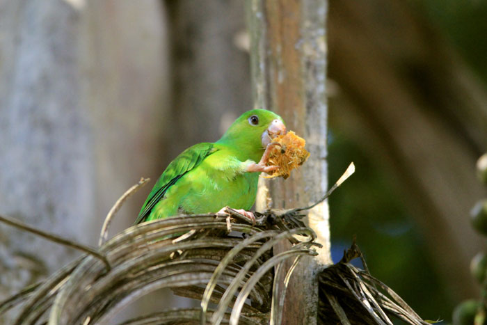 Paulo. Alimenta-se de frutos, néctar e sementes e visita