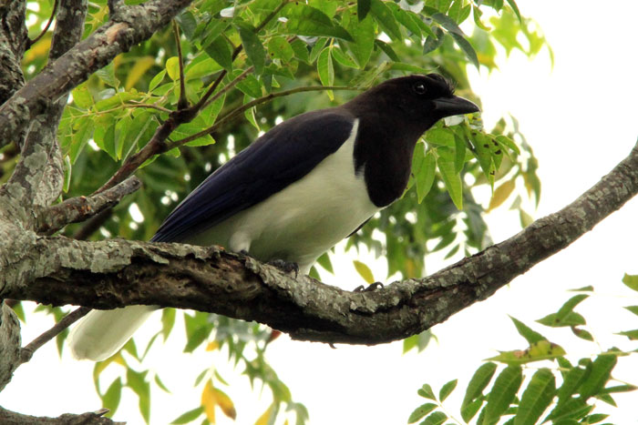 e curvadas, pretos; dorso marrom-violáceo; asas e cauda