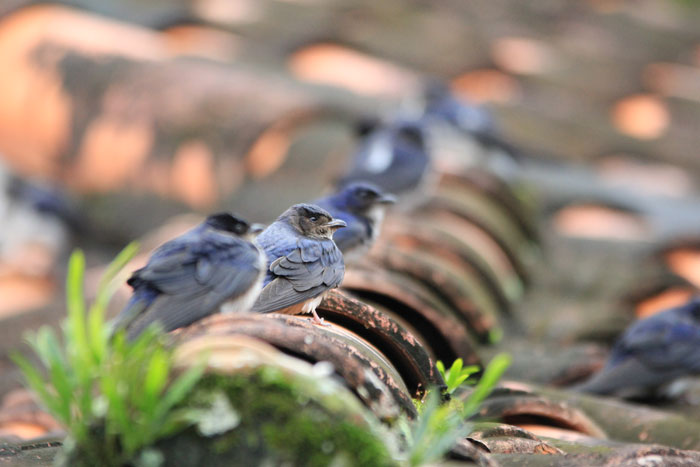 também nidifica sob beirais de telhados. Colocam de dois