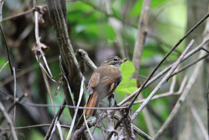 e coberteiras das asas marrom-avermelhadas. Xenops m. genibarbis